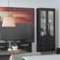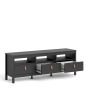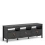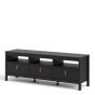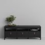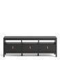 A modern tv-unit including 3 drawers for all your storage needs in a striking design complete with brown leather tab handles, also available in white