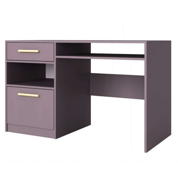 Revive your interior with our BARNSLEY desk! Its subdued plum colour will bring peace and harmony to any room, while creating a fashionable and stylish accent. Gold handles add elegance and are a perfect complement to the whole. The BARNSLEY desk has not only an attractive design, but above all functionality. Made of 16mm thick laminated chipboard, it guarantees durability for years. It is equipped with a cabinet, a drawer and two recesses that will accommodate all necessary school supplies. Additionally, it has a keyboard shelf, which makes it an ideal place for learning and playing. It will fit perfectly into both modern and traditional interiors. Its universal design will make it fit into various arrangements and at the same time emphasize the individual character of the children's room. Please have a look on the whole BARNSLEY collection. You can choose from a variety of colours. The BARNSLEY collection includes: wardrobes in different sizes, sideboards and desks. Plan a room of your dreams!