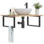 The wall mounted basin shelf securely attaches to the wall, providing an elegant and space-saving solution for your bathroom. Sturdy and long-lasting: This basin shelf is combined with a steel structure and a solid acacia wood top, making it sturdy, stable, and long-lasting.Space-saving: The floating basin shelf has ample space to store creams and small items. Thanks to the rectangular shape, you can hang towels or other things on the support to save space.Easy to use: The countertop comes undrilled to allow the basin to be mounted on the left, right, or in the centre, depending on your room's requirements. Thanks to the pre-drilled holes in the holder, it can be easily assembled with the tabletop and mounted on the wall.Wide applications: Thanks to its modern design, it provides additional space for various types of bathrooms. Good to know:Screws are not included, you can purchase the screws separately based on the information provided below.
