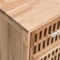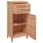 This bathroom cabinet, featuring spacious storage space, is a great addition to your bathroom, giving it a tidy and striking appearance! Solid walnut wood: Solid walnut wood is a dense and robust wood that is highly resistant to wear and tear, well known for its characteristic colour and attractive grain patterns.Ample storage space: The bathroom unit has 2 compartments and a drawer, providing ample storage space for keeping your daily essentials well organised.Practical door: Keep your space clutter-free by hiding small essentials behind the door of this bathroom cupboard.Great ventilation: The door and drawer of the toilet cabinet are designed with a lattice look, which guarantees optimal ventilation. Warning:In order to prevent overturning, this product must be used with the wall attachment device provided. Note:Each product comes with an assembly manual in the box for easy assembly.