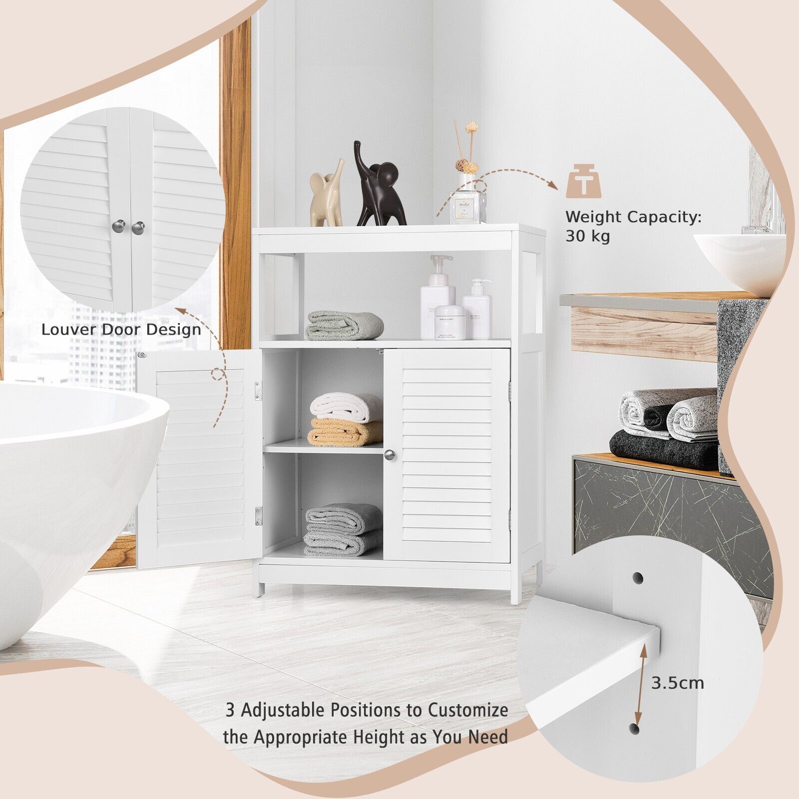 Bathroom Cabinet - Bathroom Floor Cabinet with Double Shutter Door and Adjustable Shelf-White