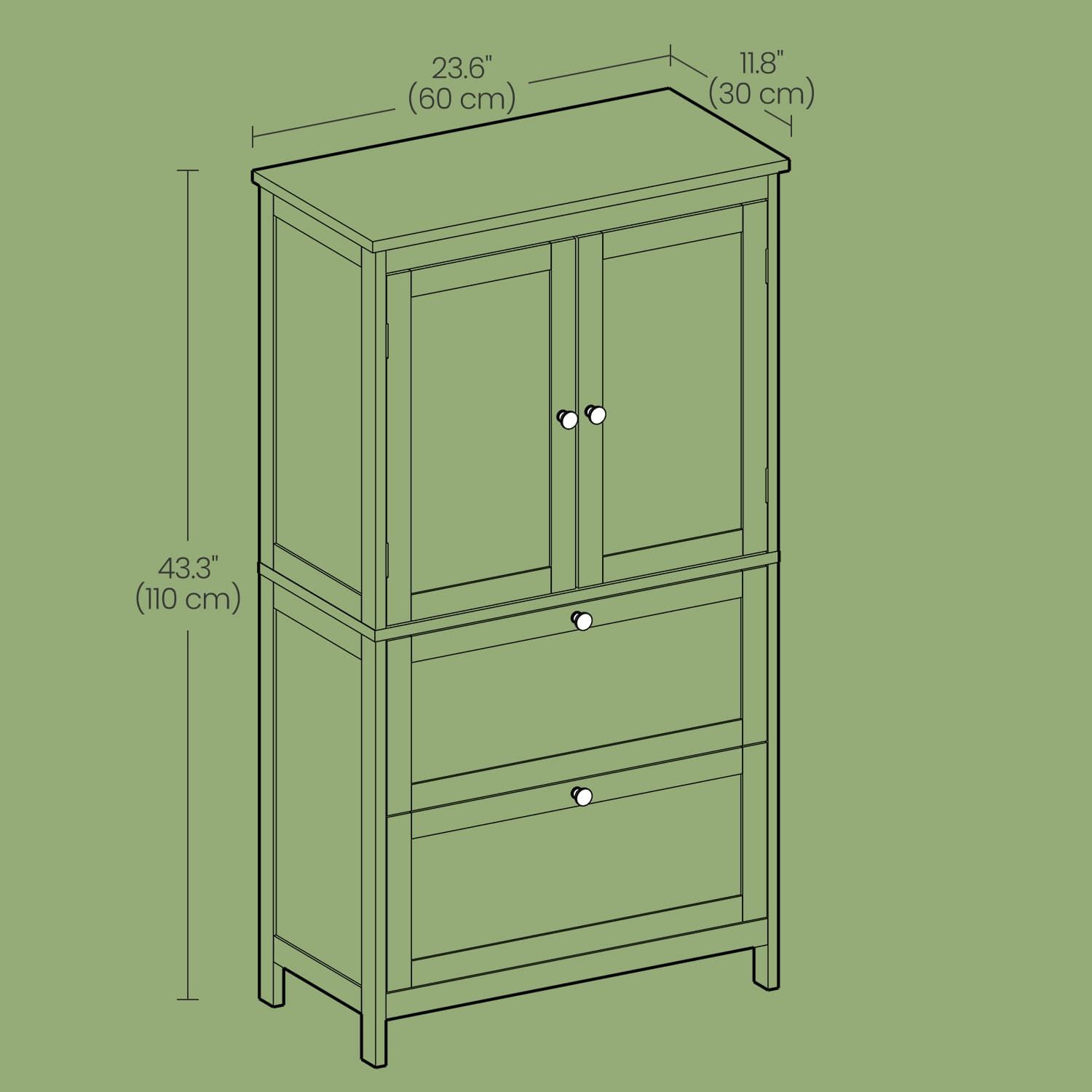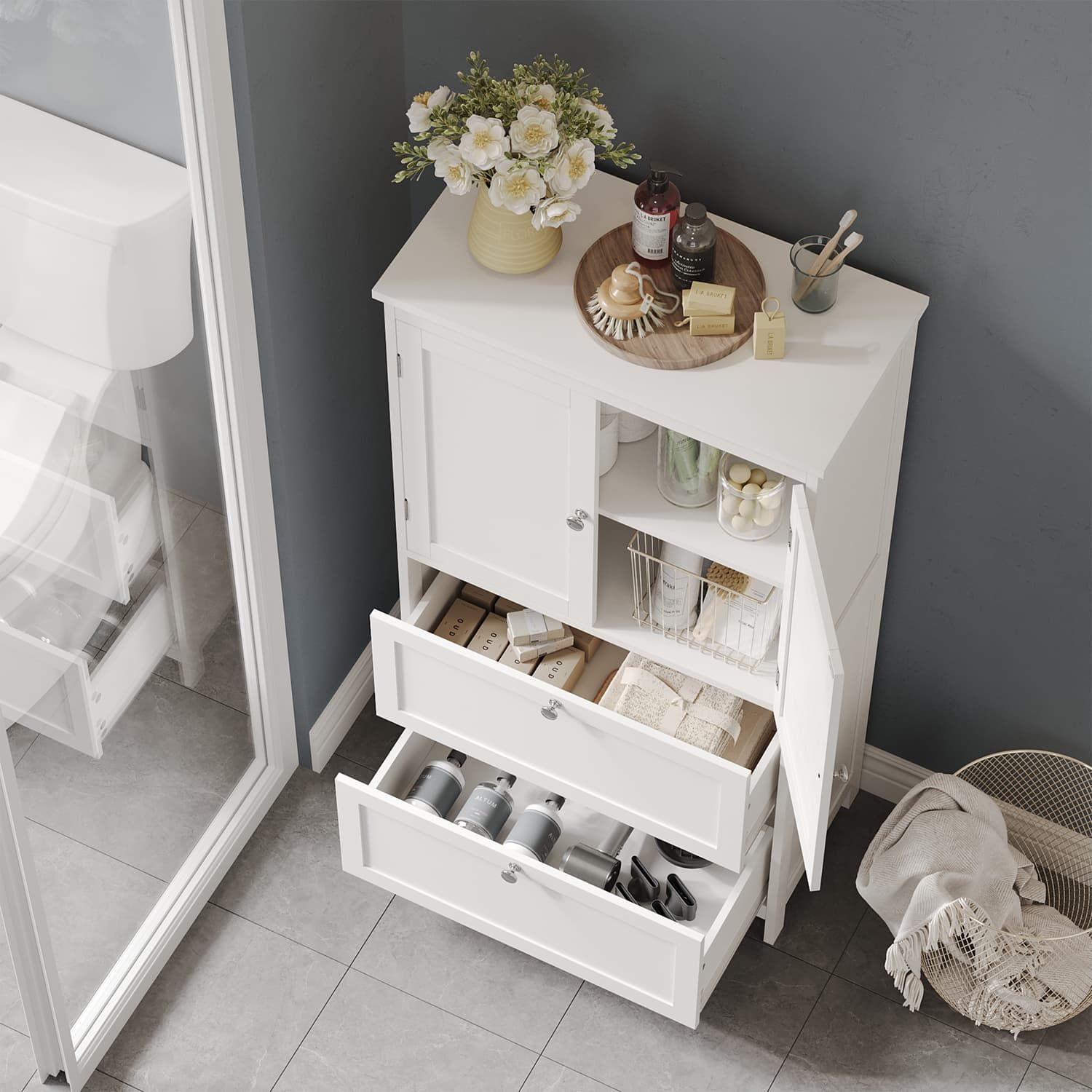 Bathroom Cabinet - MARDA Freestanding Floor Storage with 2 Drawers 2 Doors Adjustable Shelf - White