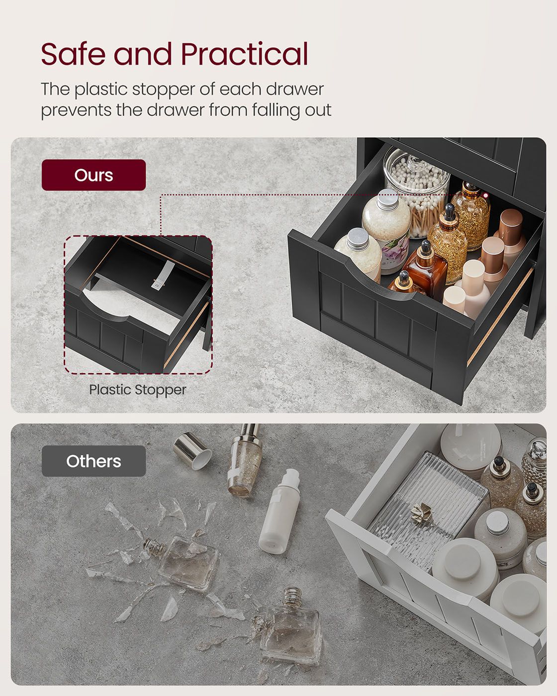 Bathroom Cabinet - MONDA Floor Storage with 4 Drawers 30 x 30 x 82 cm - Black