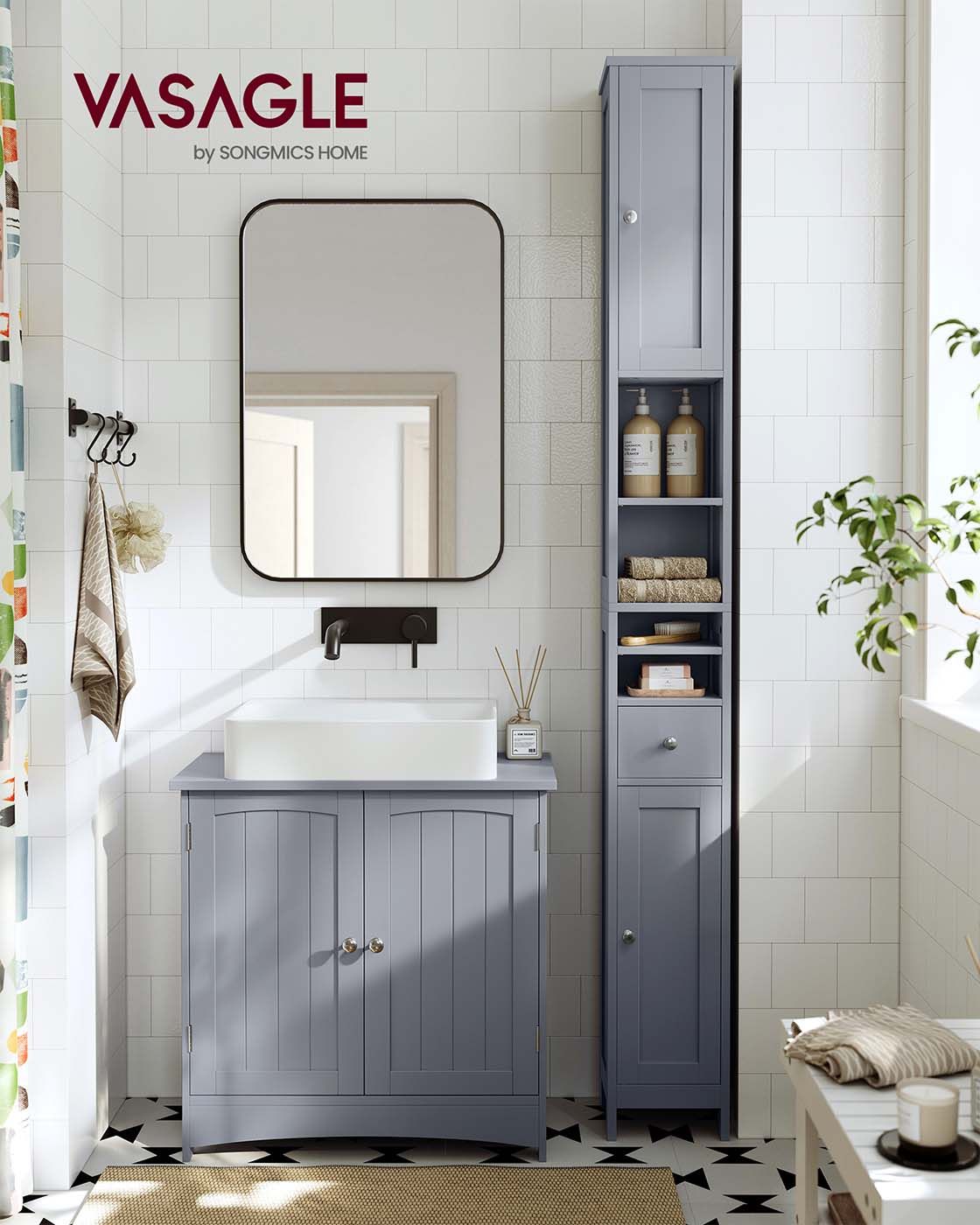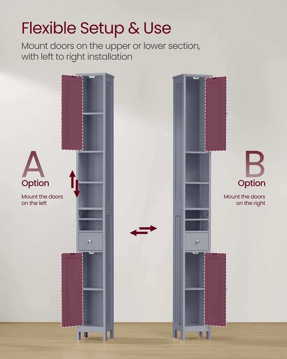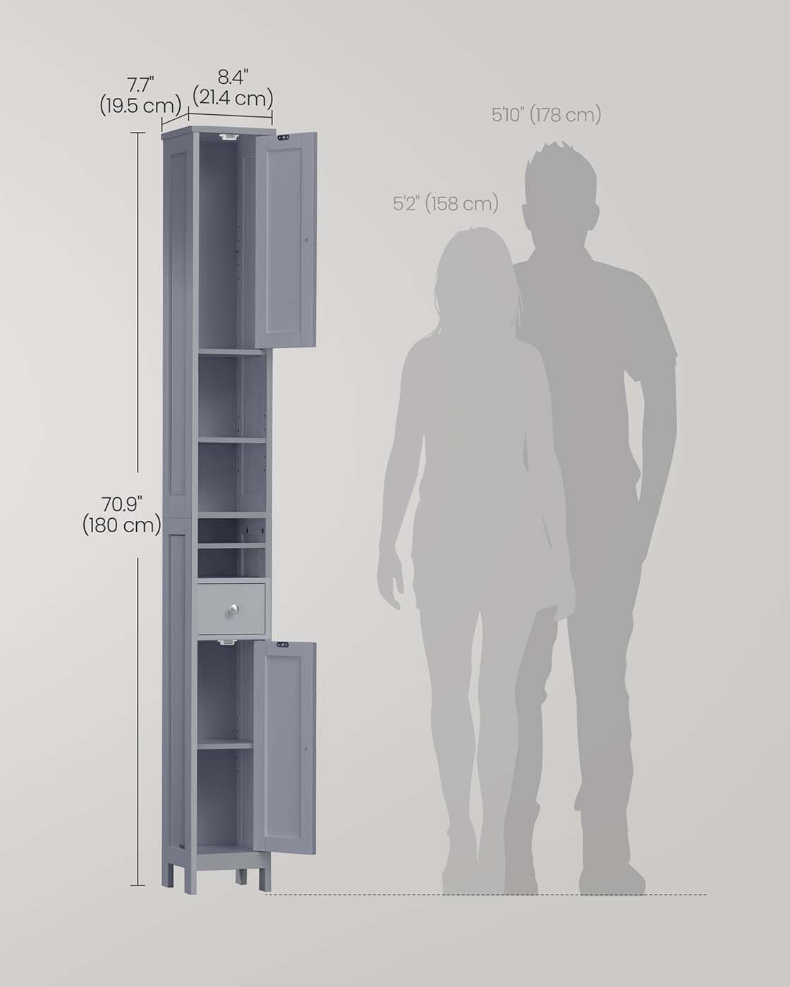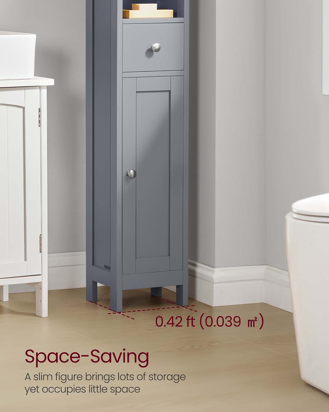 Bathroom Cabinet - ORATA Slim Freestanding Adjustable Shelves Drawer - Dove Grey