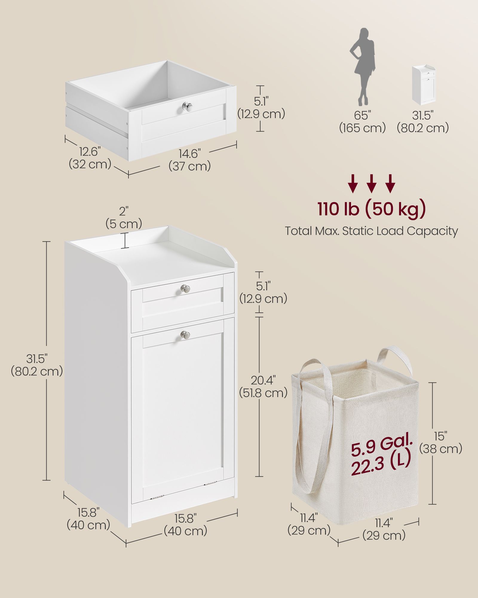 Bathroom Cabinet - ORATA Storage Unit with Drawer and Laundry Hamper - White