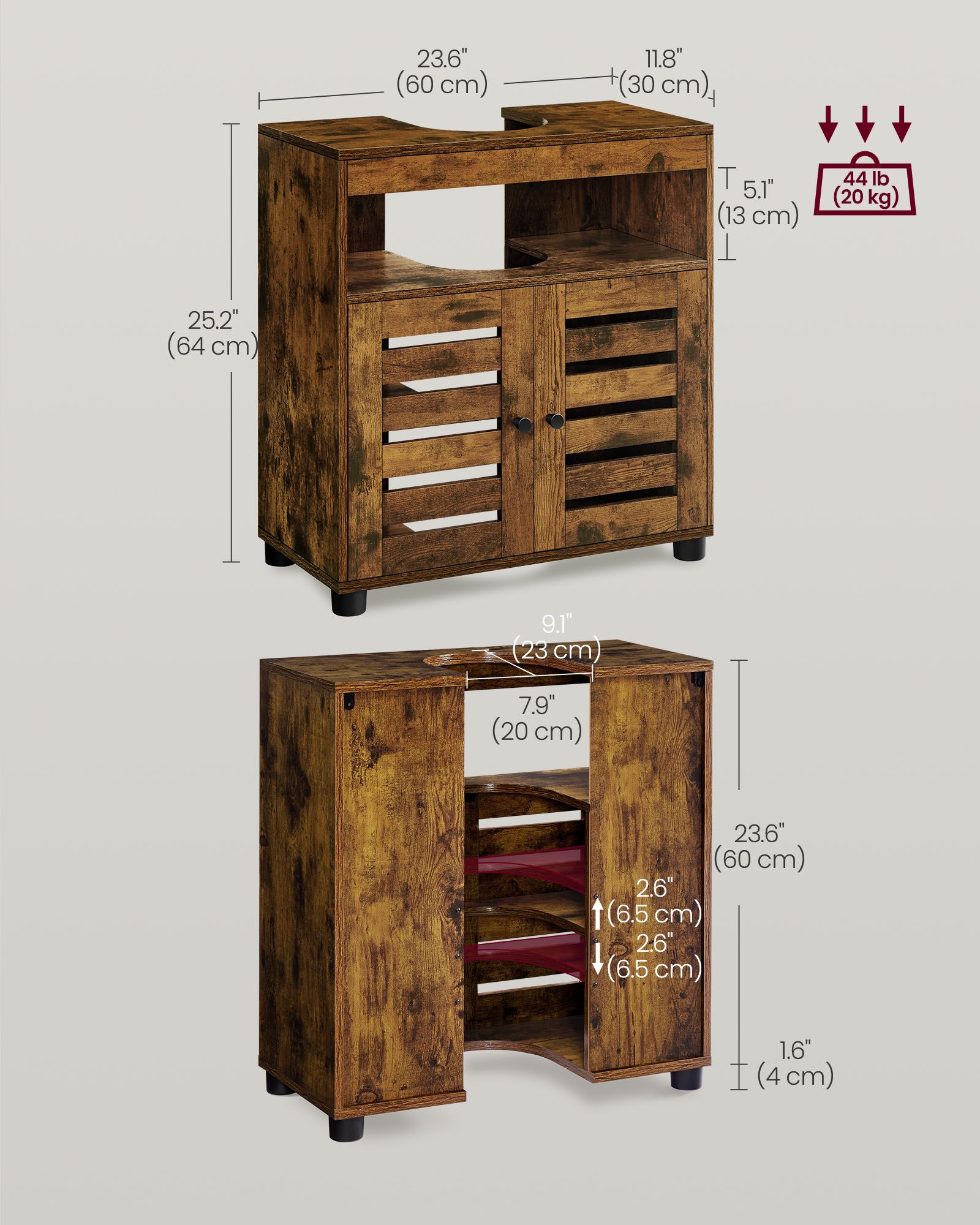 Bathroom Cabinet - TARSO Under Sink 30 x 60 x 64 cm Rustic Brown