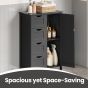 Bathroom Cabinet - VERRA Freestanding Floor Storage Unit with 4 Drawers and 1 Door - Black