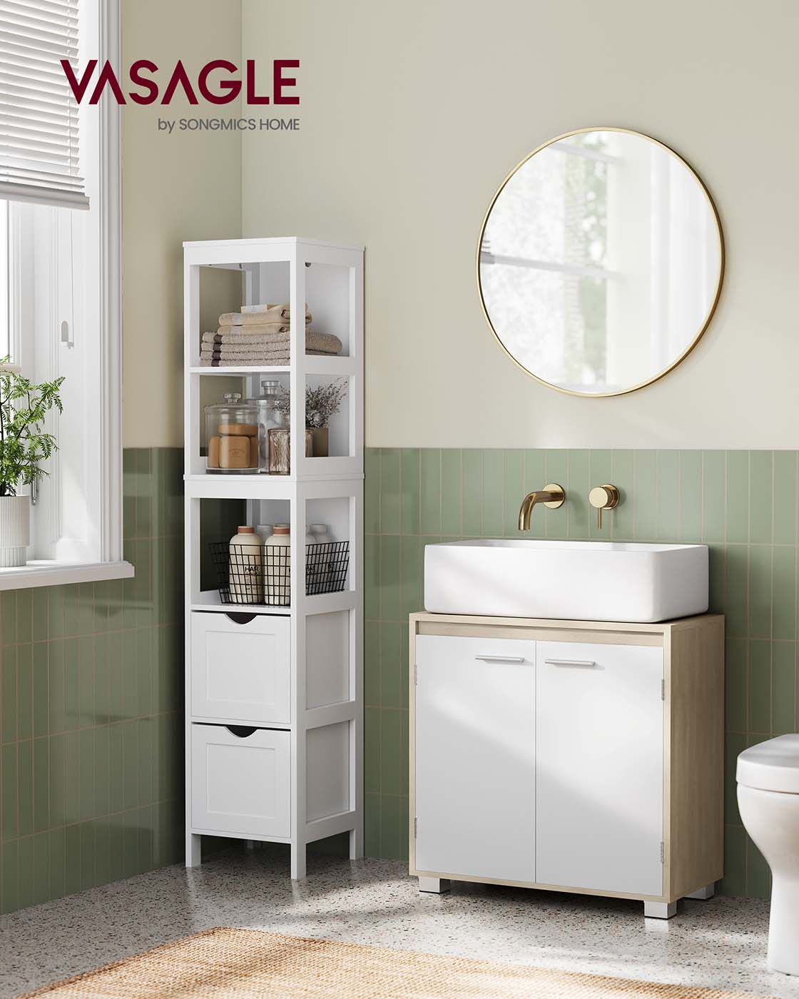 Bathroom Cabinet - VERVA Under Sink Storage Compartment - Beige and White