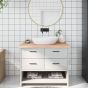 Are you planning to renovate your countertops at home? This wooden bathroom countertop is a perfect choice! Durable construction: This bathroom worktop is made of solid oak wood, which is a beautiful natural material. Oak wood has a medium brown colour and a dense grain, contributing to its unique look.Versatile applications: Besides a bathroom vanity top, this wooden countertop can be combined with different bases according to your needs. It can be used as a shelf, cabinet top, desk top, table top etc.Untreated surface: As the bathroom top is crafted from solid oak wood with no finish, you can keep its natural colour but also can paint or lacquer it as per your preference.Handmade with live edge: This bathroom vanity countertop is handmade with a live edge. Due to that the knots, cracks, slightly curved shapes, and colour tones are part of the oak wood, every piece of oak countertop has its own unique character to display. The delivery is random.