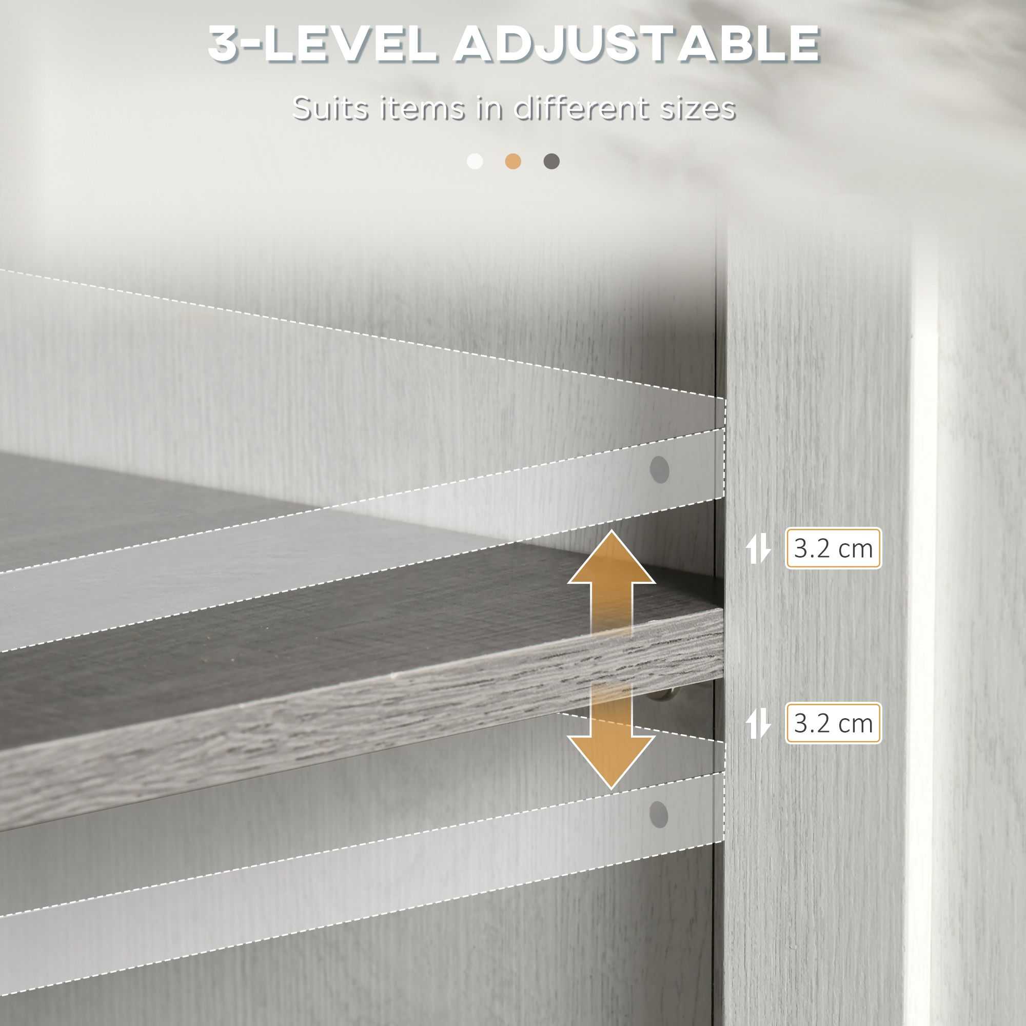 - Adjustable shelf: The shelf inside the double-door cabinet of the bathroom cupboard is 3-level adjustable to suit your items of different types and sizes.