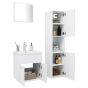 With this stylish bathroom furniture set, you can create additional storage space for your bathroom with a striking, tidy appearance. The clean lines and sleek design blend into your bathroom perfectly. The furniture set consists of a sink cabinet, a high cabinet, and a mirror. The chic basin cabinet has 1 compartment, and the top of it is ideal for placing the sink. The high cabinet features a total of 5 compartments and 2 doors, offering ample space to store items in your bathroom. The mirror also adds an excellent appearance to your home decor. Additionally, this bathroom set is easy to clean with a damp cloth. Please note: The sink, tap, and drain are not included in the delivery.