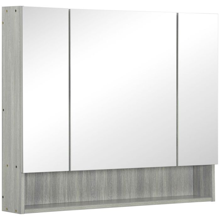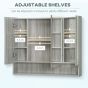 Bathroom Mirror Cabinet, Wall Mounted Storage Cabinet with Adjustable Shelves, 3 Doors and Cupboards, Grey