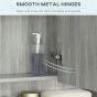 - PRACTICAL DESIGN: Features cushioned hinges that make the door open and close slowly and smoothly. Made of melamine coating MDF, this bathroom mirror with shelves is against water and easy to maintain