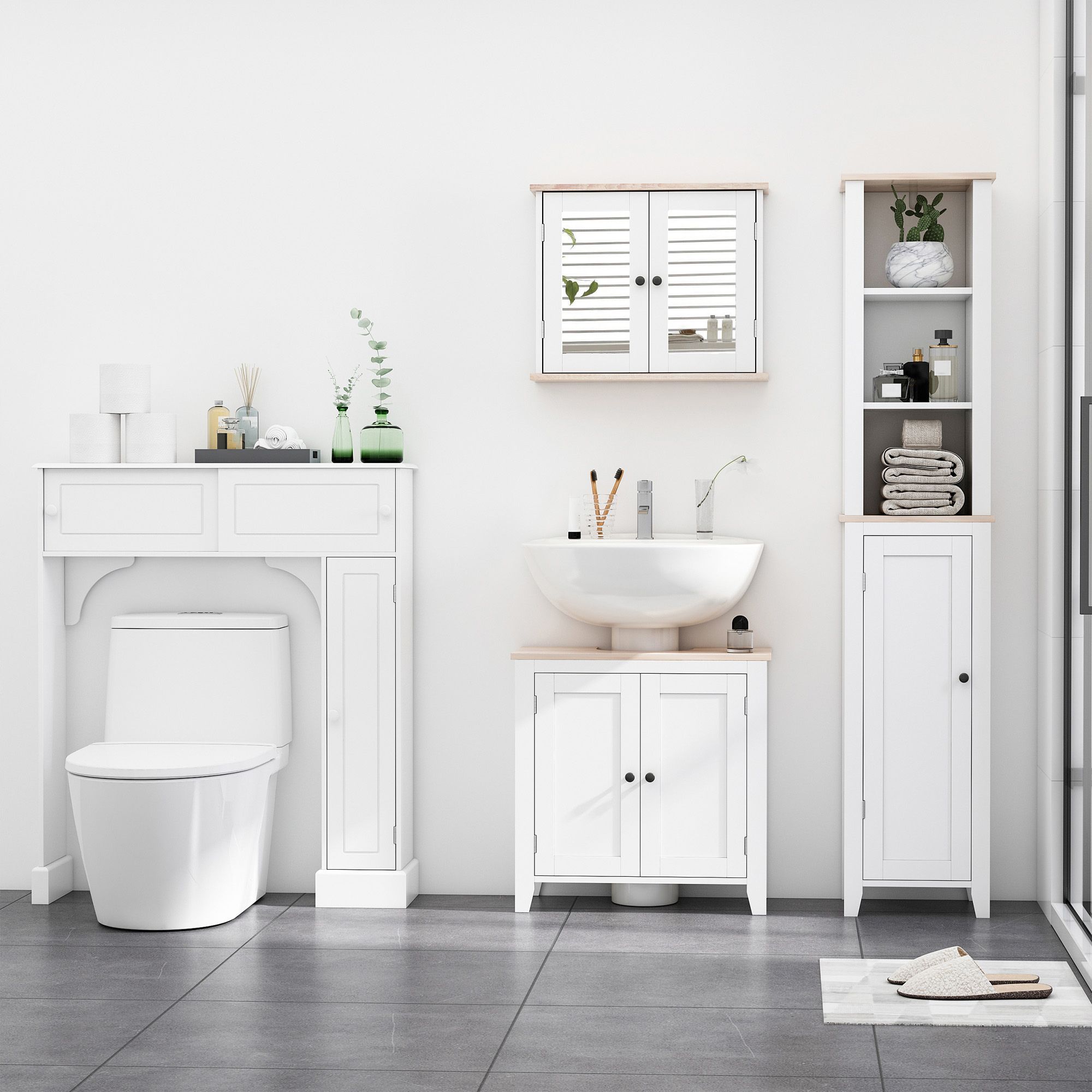 - SPACE SAVING: Wall mounted cabinet is an ideal storage solution for home. It"™s designed to maximize your space. It can be assembled on wall or over the toilet, providing extra storage without taking up valuable floor space