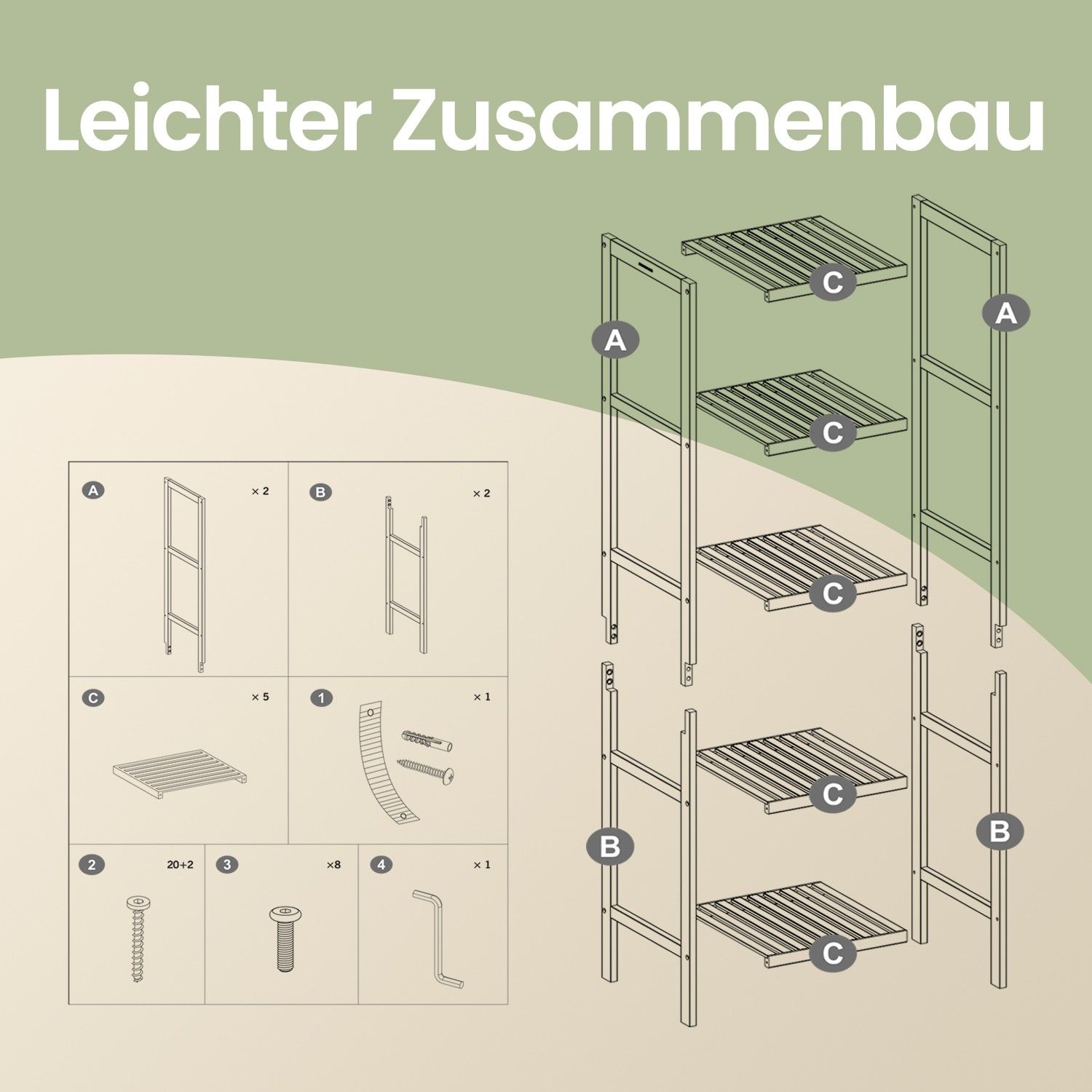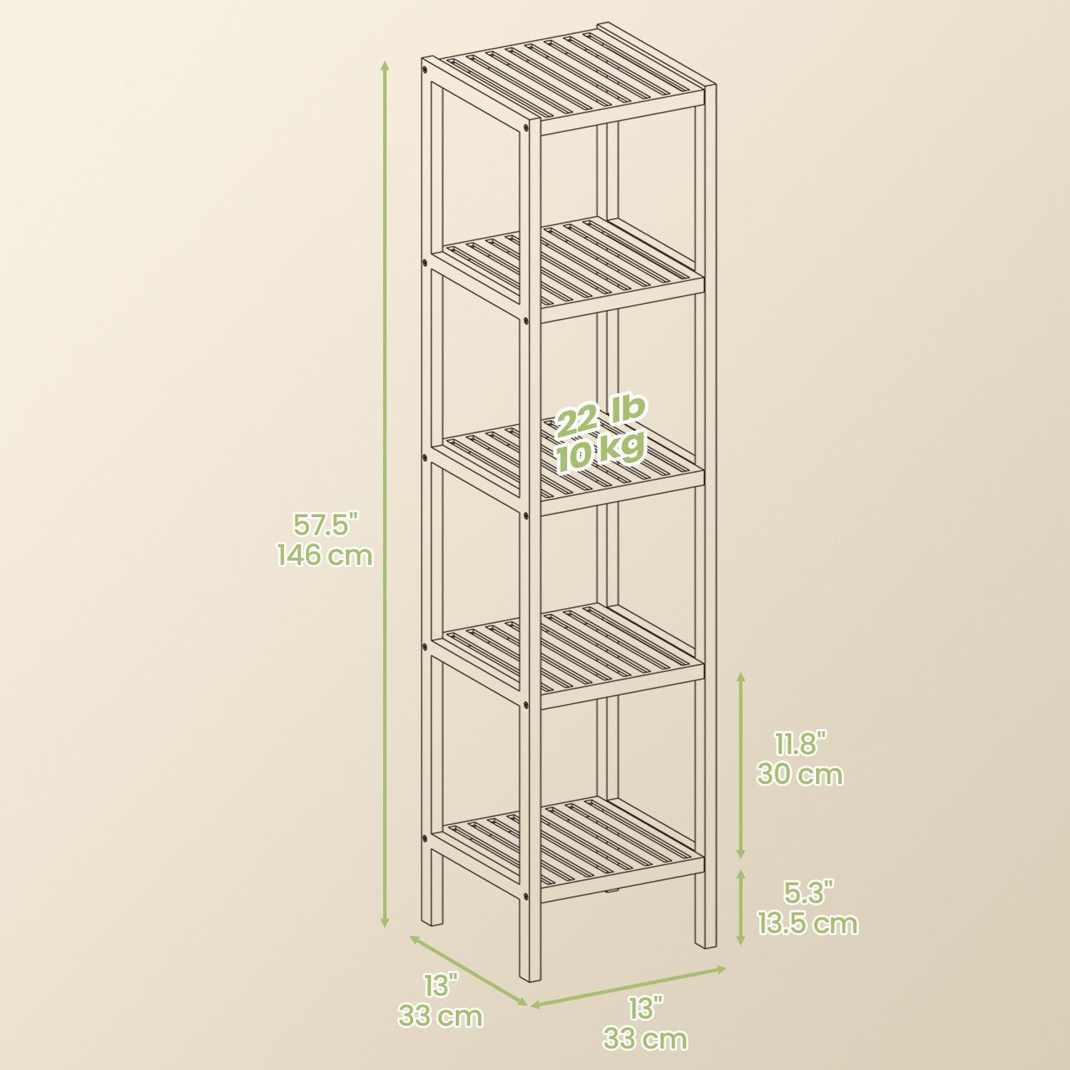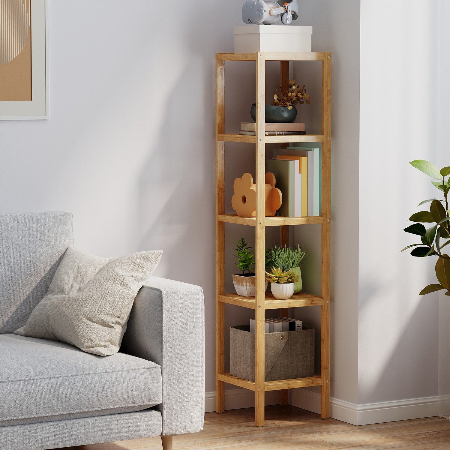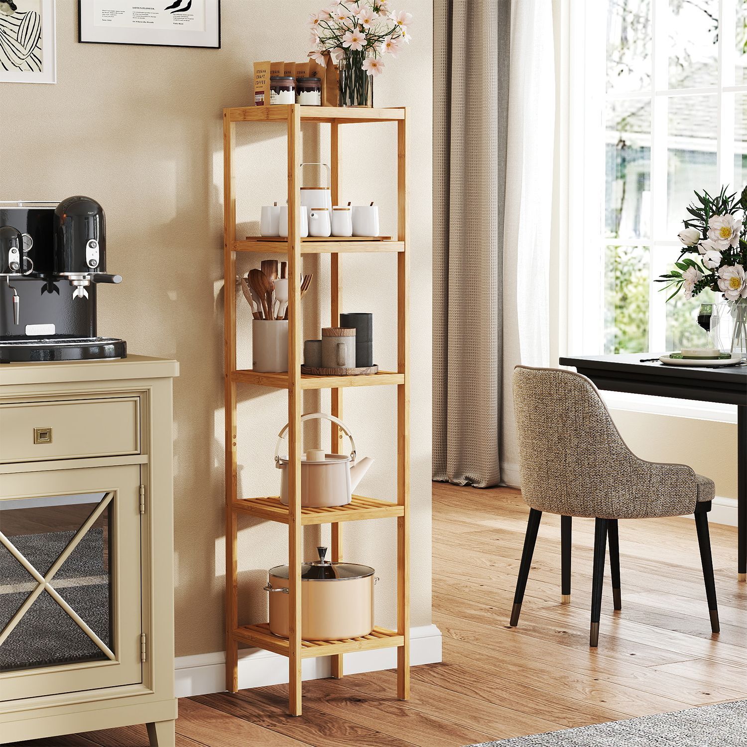 Bathroom Shelf - MARDA Bamboo 5 Tier Freestanding Narrow Storage - Medium Wood