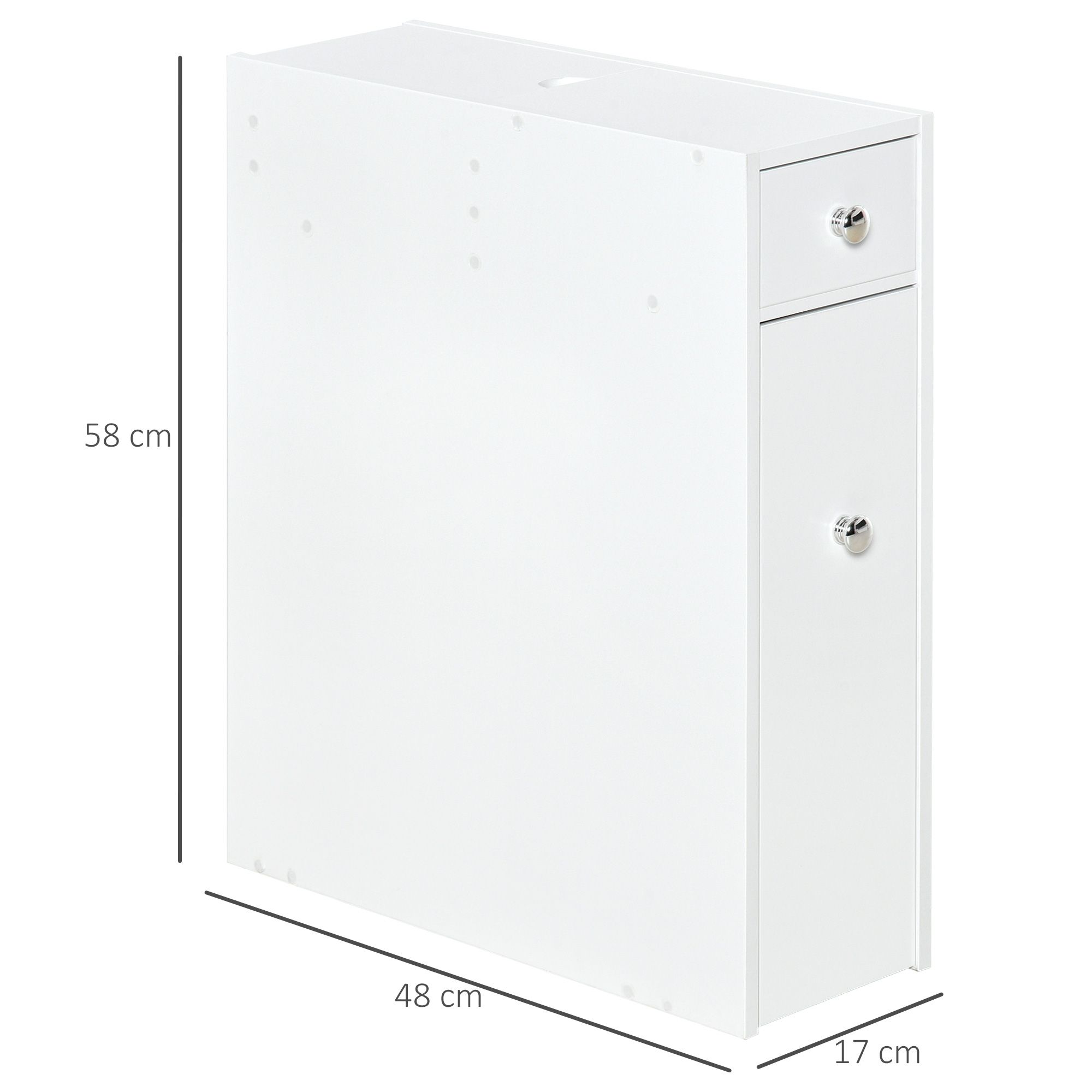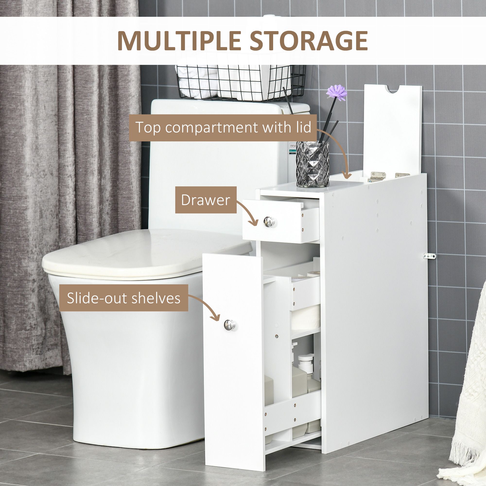 Bathroom Slim Floor Cabinet Narrow Wooden Storage Home Bath Toilet Cupboard Organiser Unit with Drawers White