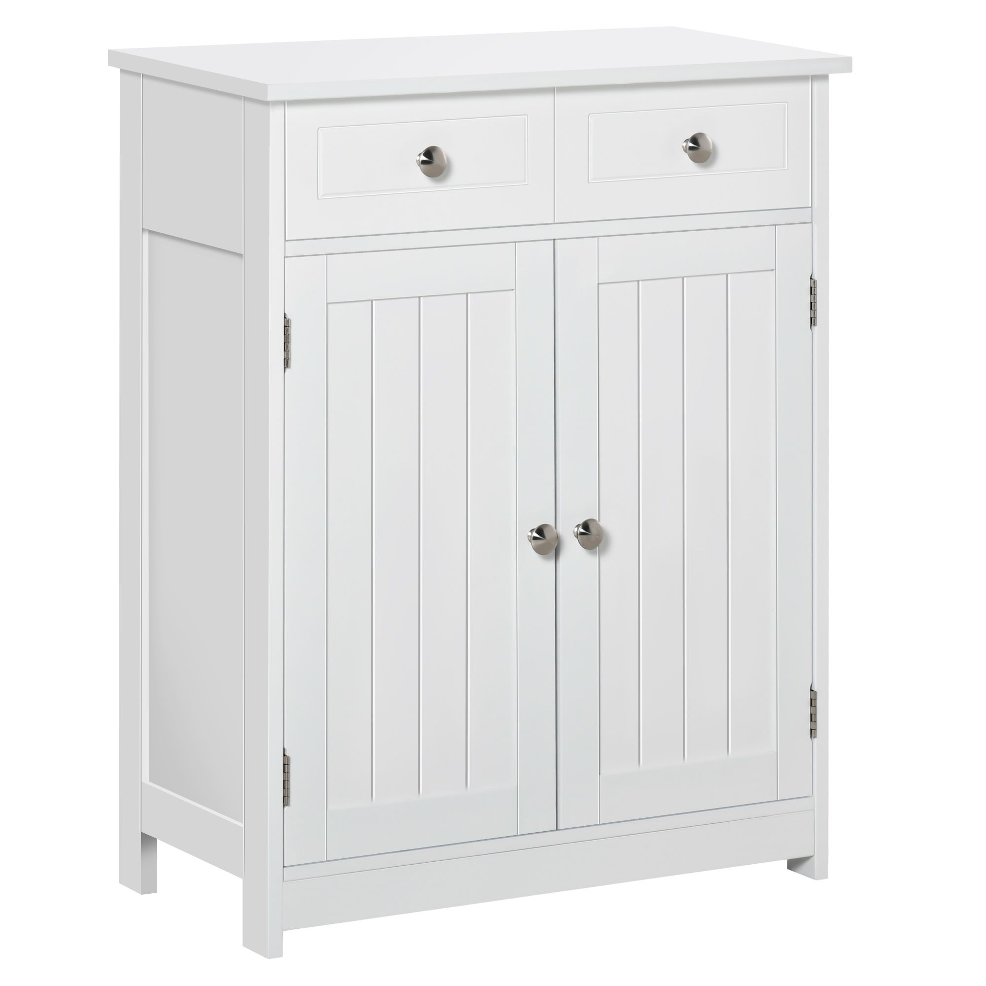 Bathroom Storage Cabinet Free-Standing Bathroom Cabinet Unit w/ 2 Drawers Cupboard Adjustable Shelf Handles Traditional Style 75x60cm White