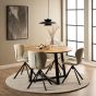 Elevate your dining experience with these dining chairs, featuring a matt black steel base with swivel function, and adorned with zigzag stitching. The monza fabric in cream offers a touch of elegance, and they come as a set of two for a complete look.