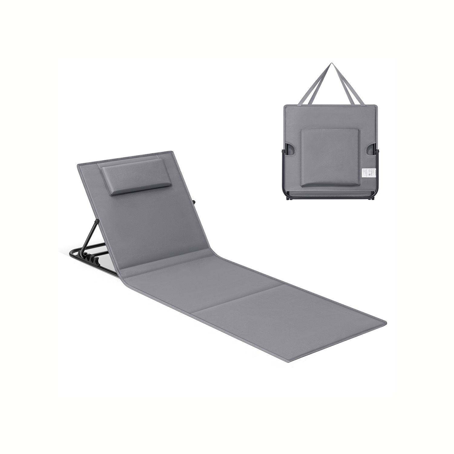 Beach Sunlounger - SERRIA Folding Portable Sunlounger with Handle - Slate Grey