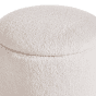 Enhance your living space with this elegant set of boucle storage pouffes. Designed for both functionality and style, these round ottomans feature a soft, textured teddy fabric that adds warmth to any room. The removable lid reveals hidden storage, perfect for keeping essentials organized. If you need a bit more space you can also hide the small pouffe inside the bigger one. Lightweight yet sturdy, they can be used as extra seating, footrests, or decorative accents. Their neutral color effortlessly blends with various interior styles, making them a versatile addition to your living room or bedroom.