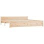 Add a modern touch to your bedroom with our classic wooden bed frame! It makes a practical and decorative addition to your interior. Solid pine wood: Solid pine wood is a beautiful natural material. Pine wood has a straight grain, and the knots give the material its signature, rustic look.Sturdy slats: The plywood slats provide good weight distribution, ensuring that the mattress stays in place with every twist and turn of your body during sleep.Storage function: The included bed drawers provide ample storage space for storing your essentials, keeping your room clean and tidy.Comfortable headboard: The classic headboard lets you rest comfortably while reading or watching a movie. Note:The delivery includes a bed frame only. The mattress is not included. You can check our shop for the matching mattresses.This bed frame is suitable for a mattress measuring 180 x 200 cm (6FT Super King).