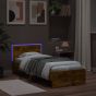 Bed Frame with Headboard and LED Lights Smoked Oak 75x190 cm Small Single