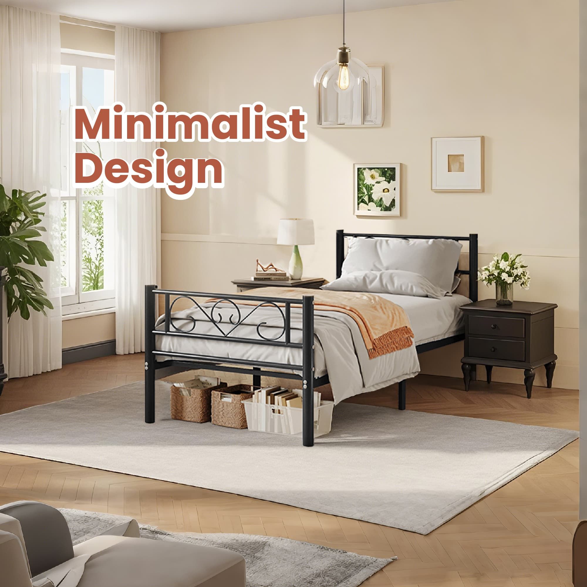 Bed Frame - ZARNIA Single Metal Bed Frame Fits Mattress 190 x 90 cm - Black
