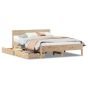 Get a better restful night's sleep from this bed frame! It makes a welcoming addition to any bedroom. Stable and long-lasting frame: Solid pinewood is known for its strength and durability. Its straight grains and distinctive knots contribute to its rustic charm.Slatted base for optimal support: The bed frame is equipped with a slatted base for support and breathability for your mattress.Versatile headboard: This bed frame comes with a headboard that provides excellent back support when you sit up in bed to read or watch TV, while also serving as a decorative element.Make full use of space: This bed frame features two drawers underneath, providing storage for items like extra bedding, seasonal clothing, and toys.Effortless manoeuvrability: This under-bed storage drawer features four wheels, providing smooth and effortless manoeuvrability for sliding in and out from beneath your bed. Good to know:A mattress is not included with this bed. We do offer a various selection of mattresses. You can check our shop for a matching mattress.