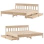 Get a better restful night's sleep from this bed frame! It makes a welcoming addition to any bedroom. Stable and long-lasting frame: Solid pinewood is known for its strength and durability. Its straight grains and distinctive knots contribute to its rustic charm.Slatted base for optimal support: The bed frame is equipped with a slatted base for support and breathability for your mattress.Versatile headboard: This bed frame comes with a headboard that provides excellent back support when you sit up in bed to read or watch TV, while also serving as a decorative element.Make full use of space: This bed frame features two drawers underneath, providing storage for items like extra bedding, seasonal clothing, and toys.Effortless manoeuvrability: This under-bed storage drawer features four wheels, providing smooth and effortless manoeuvrability for sliding in and out from beneath your bed. Good to know:A mattress is not included with this bed. We do offer a various selection of mattresses. You can check our shop for a matching mattress.