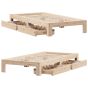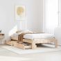 Get a better restful night's sleep from this bed frame! It makes a welcoming addition to any bedroom. Stable and long-lasting frame: Solid pinewood is known for its strength and durability. Its straight grains and distinctive knots contribute to its rustic charm.Slatted base for optimal support: The bed frame is equipped with a slatted base for support and breathability for your mattress.Make full use of space: This bed base features two drawers underneath, providing storage for items like extra bedding, seasonal clothing, and toys.Stable and durable feet: This wooden bed frame is supported by sturdy feet, ensuring stability, safety, and firmness.Effortless manoeuvrability: This under-bed storage drawer features four wheels, providing smooth and effortless manoeuvrability for sliding in and out from beneath your bed. Good to know:A mattress is not included with this bed. We do offer a various selection of mattresses. You can check our shop for a matching mattress.