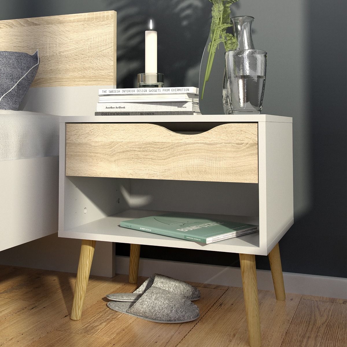 Upgrade your bedroom with the sleek, retro-modern charm of the OSSETT 3-Piece Bedroom Set. Featuring a 2-door, 2-drawer wardrobe and two matching bedside tables, this stylish set brings authentic Scandinavian appeal to any space.