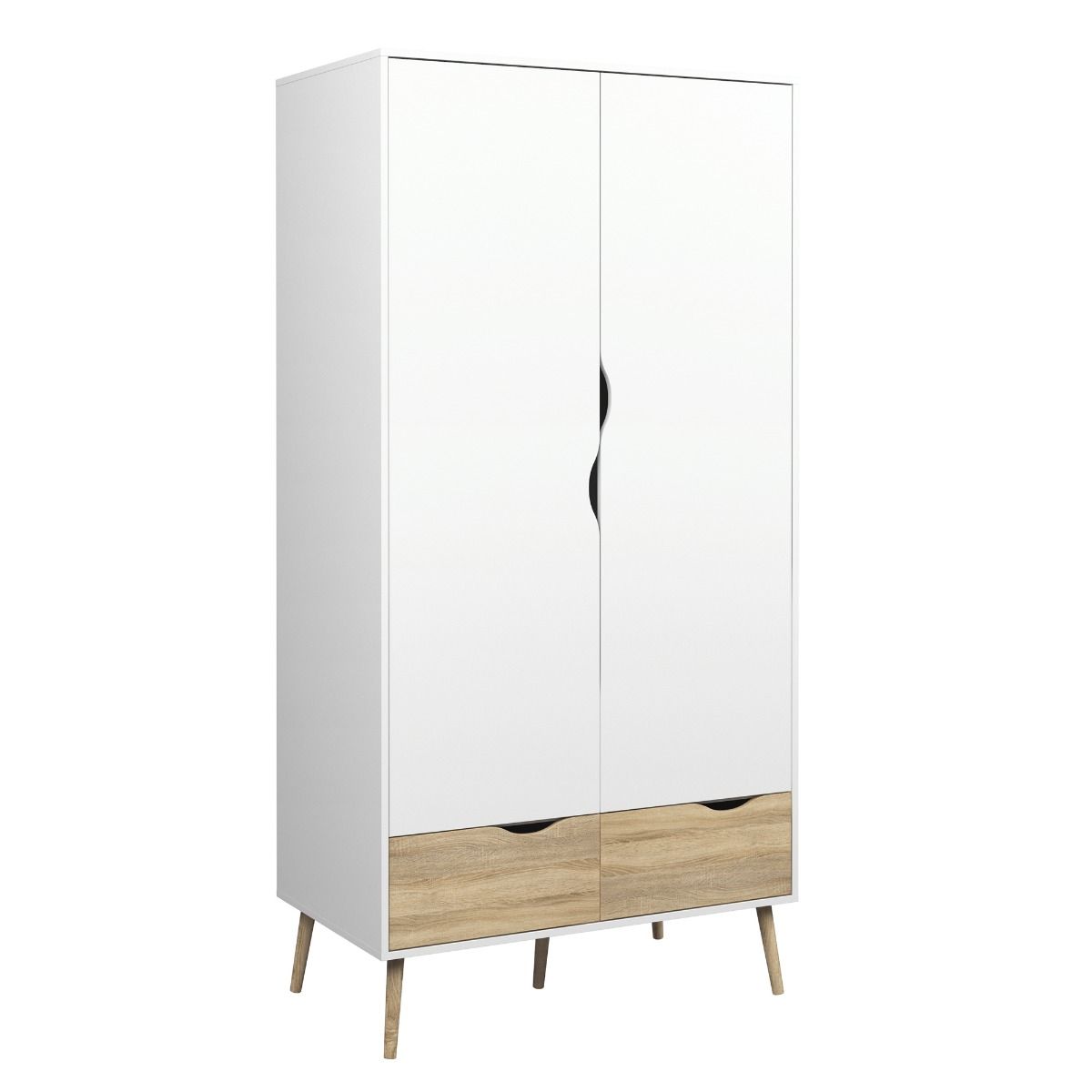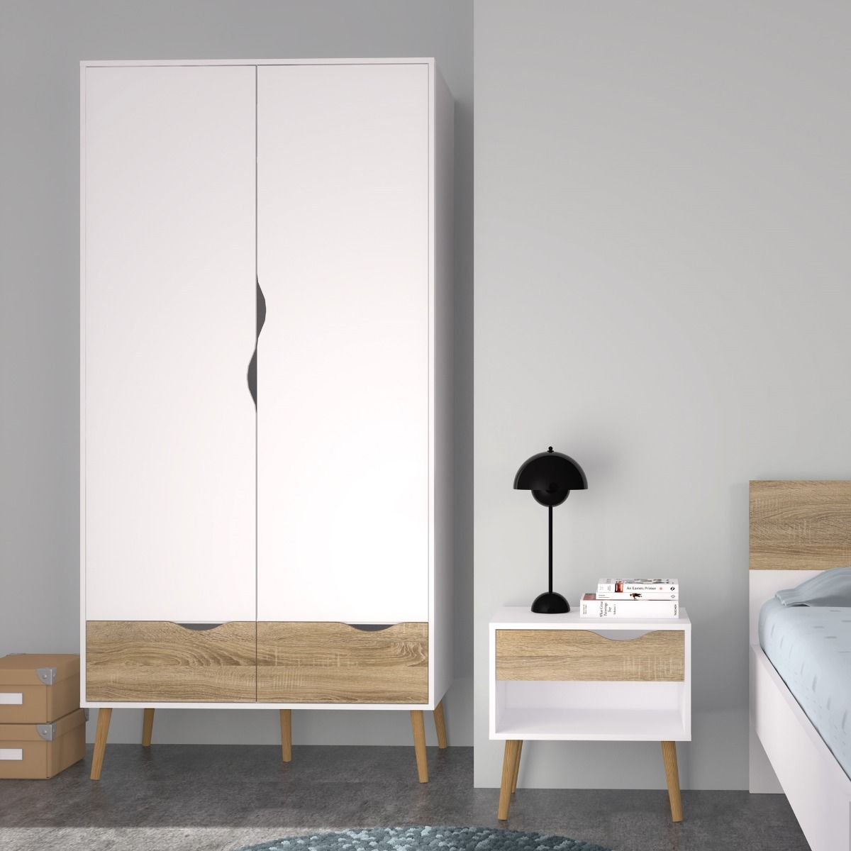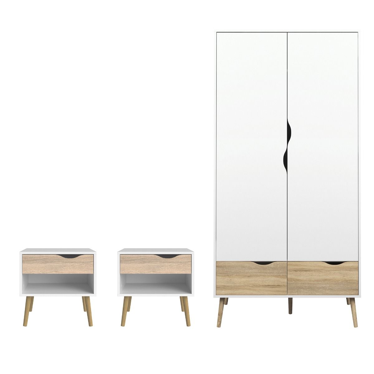 OSSETT 2 Door Wardrobe Set 3 Piece - White and Oak