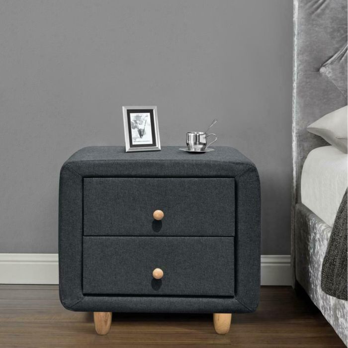 Bedside Table - LINEN 2 Drawer Nightstand Grey 52cm