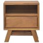 This wooden bedside cabinet, featuring Scandinavian style, is eye-catching and practical furniture for your bedroom. Constructed from highly durable teak hardwood, this piece of teak furniture is seasoned, kiln-dried, and fine-sanded to give a very smooth appearance. Teak wood is known for its exceptional strength and weather resistance. Teak wood is the perfect choice if you want to purchase a long-lasting piece of furniture. This nightstand features a sturdy construction. Its top is ideal for placing clocks, lamps and other essentials within reach. There is also an open compartment and a drawer for convenient storage of your books and magazines.