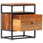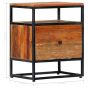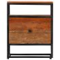 Introduce an air of mid-century elegance to your interior with our beautiful solid reclaimed wood bedside cabinet! This nightstand is made of solid reclaimed wood that has been sourced from joists, floors and support beams from old buildings being demolished, and it can consist of different types of wood like pine, teak, beech, oak, cedar, mango wood, acacia, etc. This means the reclaimed wood retains the characteristics of these different types of wood. Reclaimed wood is already aged, weathered and dried, so it doesn't shrink or bend. Every step of the process is carried out with the greatest care, be it polishing, painting or lacquering. The exquisite craftsmanship and the graceful wood grains make every piece of furniture distinctive and slightly different from the next. This telephone stand is distinguished by 1 drawer and 1 shelf, offering an ideal solution for keeping your smaller items organised and within reach.