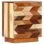 Bring the luxury of mid-century inspired design into your interior with our elegant solid wooden bedside cabinet! This nightstand is made of reclaimed wood that has been sourced from joists, floors and support beams from old buildings being demolished, and it can consist of different types of wood like pine, teak, beech, oak, cedar, mango wood, acacia, etc. This means the reclaimed wood retains the characteristics of these different types of wood. Reclaimed wood is already aged, weathered and dried, so it doesn't shrink or bend. Every step of the process is carried out with the greatest care, be it polishing or lacquering. The exquisite craftsmanship and the graceful wood grains make every piece of furniture distinctive and slightly different from the next. Additionally, this telephone stand is distinguished by 2 drawers, offering an ideal solution for keeping your smaller items organised and within reach.