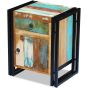 This vintage-style bedside cabinet, made of solid reclaimed wood, will make a timeless addition to your home. Thanks to the strong steel frame, the wooden cabinet is very steady and durable. It has a drawer for keeping smaller items organised and within reach, and a compartment with door which provides additional storage space. The nightstand can also be used as a side cabinet or telephone stand. The bedside cabinet is made of recycled wood, which means every piece of furniture is unique and slightly different from the next. Furniture made of reclaimed wood has the characteristics of different woods, like teakwood, acacia, mango wood, saal wood, etc. Reclaimed wood is solid, stable, durable, and beautiful. Signs of wear and visible grain structure give each piece its own history and unique look. The bedside cabinet is fully handmade, and the craftsmanship adds to its spectacular retro style.