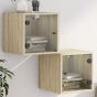 These trendy wall-mounted bedside cabinets featuring an elegant design make a timeless addition to your interior decor. Durable material: The engineered wood is of exceptional quality with smooth surface and also features strength, stability and resistance to moisture.Ample storage space: These bedside tables offer handy storage space for keeping your magazines, remote controls and small items well-organised and within reach.Stable top: The side cabinets feature a stable top that can be used to place table lamps, books, etc.Practical glass doors: Keep your space clutter-free by hiding small essentials behind the doors of bedroom furniture. In addition, these glass doors allow you to see inside the bed side cabinets to display items beautifully.Wall-mounted design: These side tables can be wall-mounted to add extra storage space. That way, you can maximise your floor space and keep the area clean.