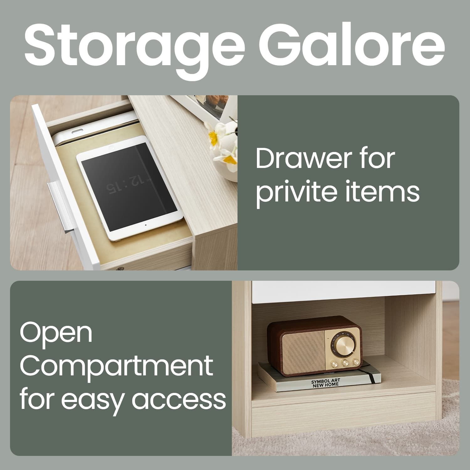 Bedside Table - VERRA Side Table with Drawer and Handle - White Natural