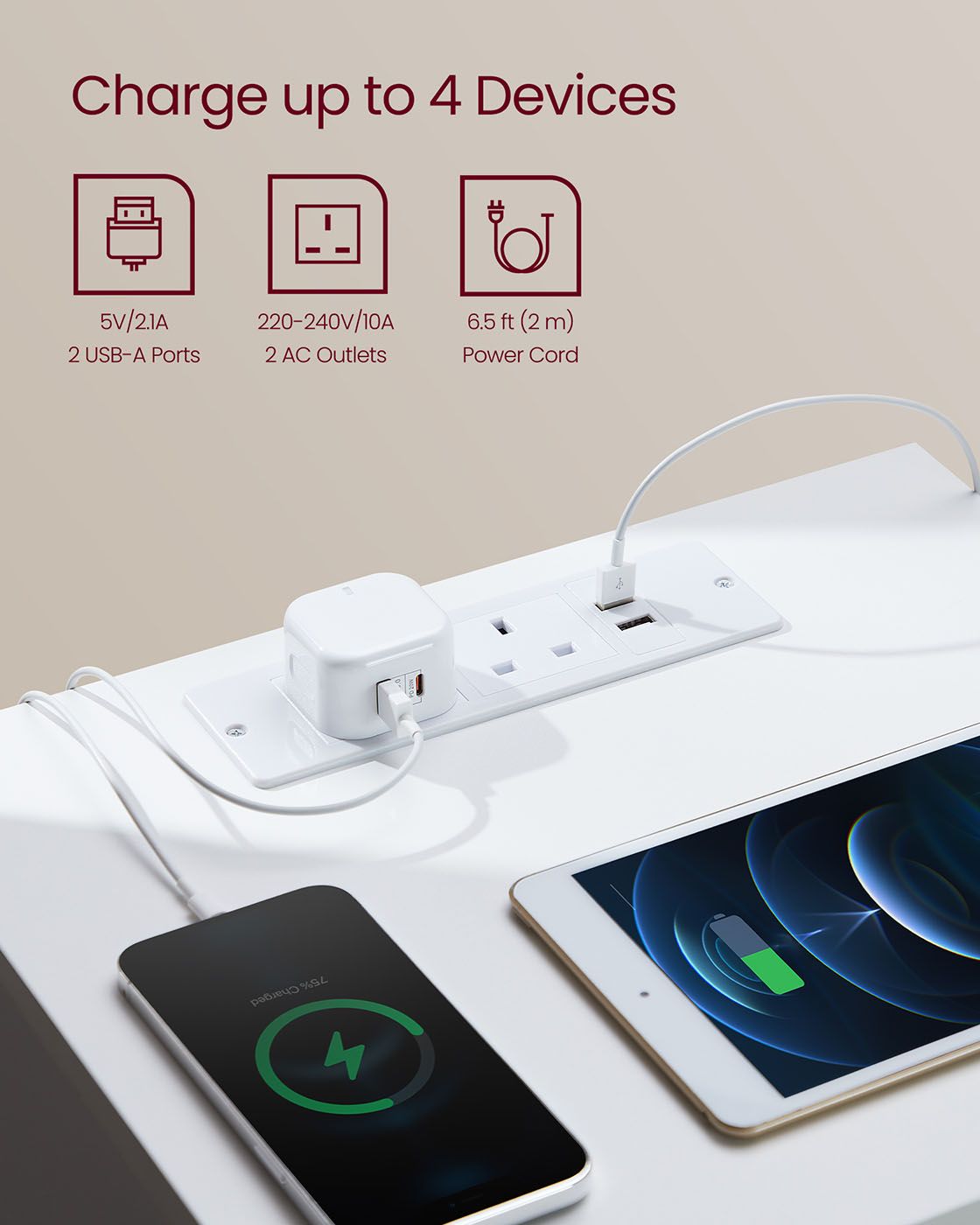 Bedside Table - VERVAS Charging Station with Drawer - White Natural Oak