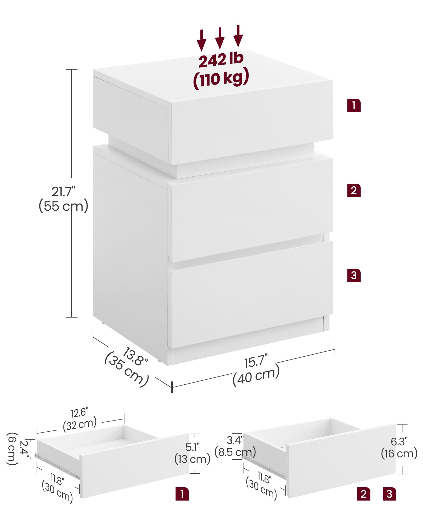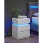 Bedside Table - VERVAS LED Lights 3 Drawer Storage - White