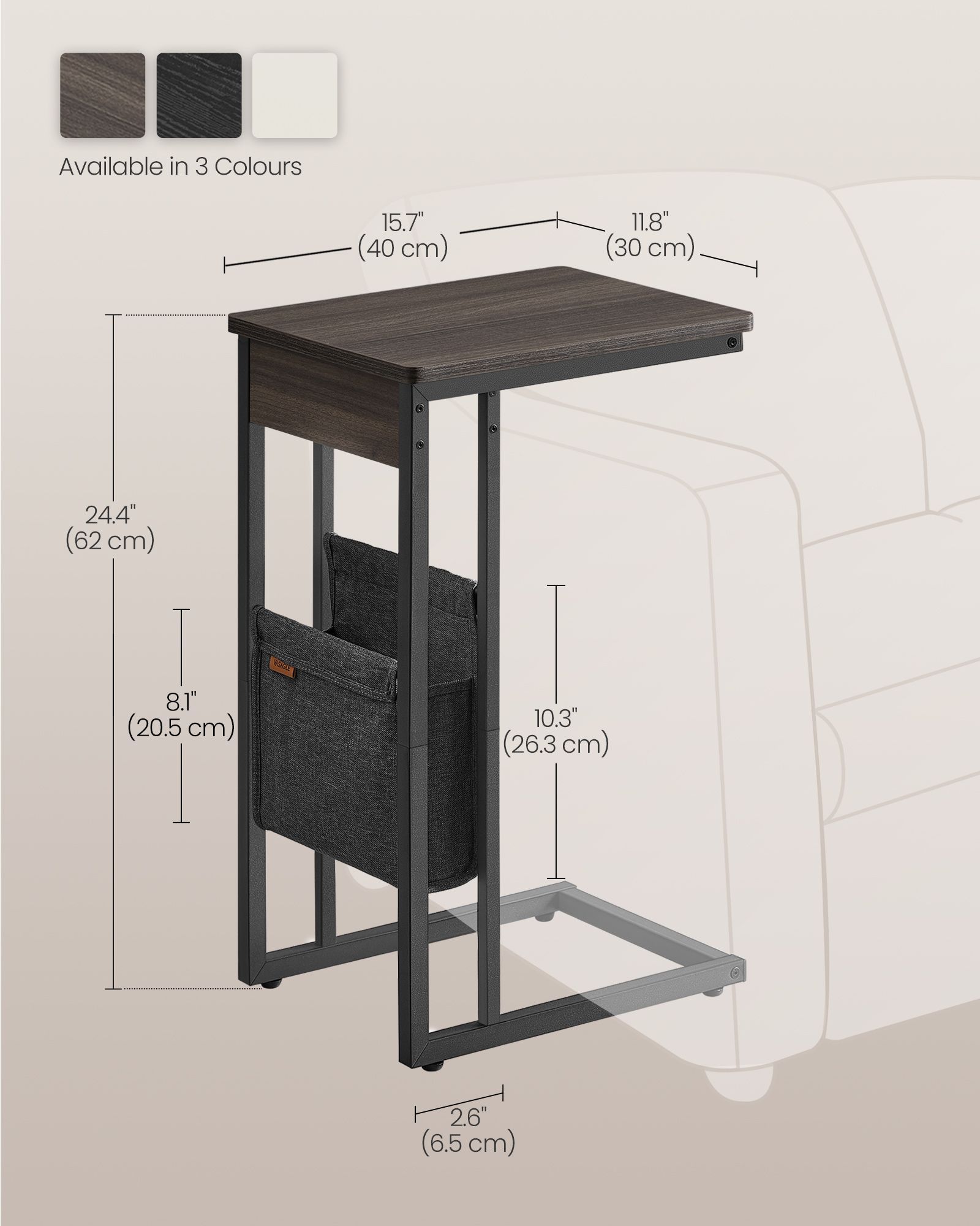 Bedside Table - VIVNIA C-Shaped with Fabric Storage Bag - Ash Brown
