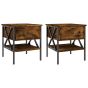 Bedside Table - LIVERPOOL 2 Piece Nightstand Smoked Oak 40cm