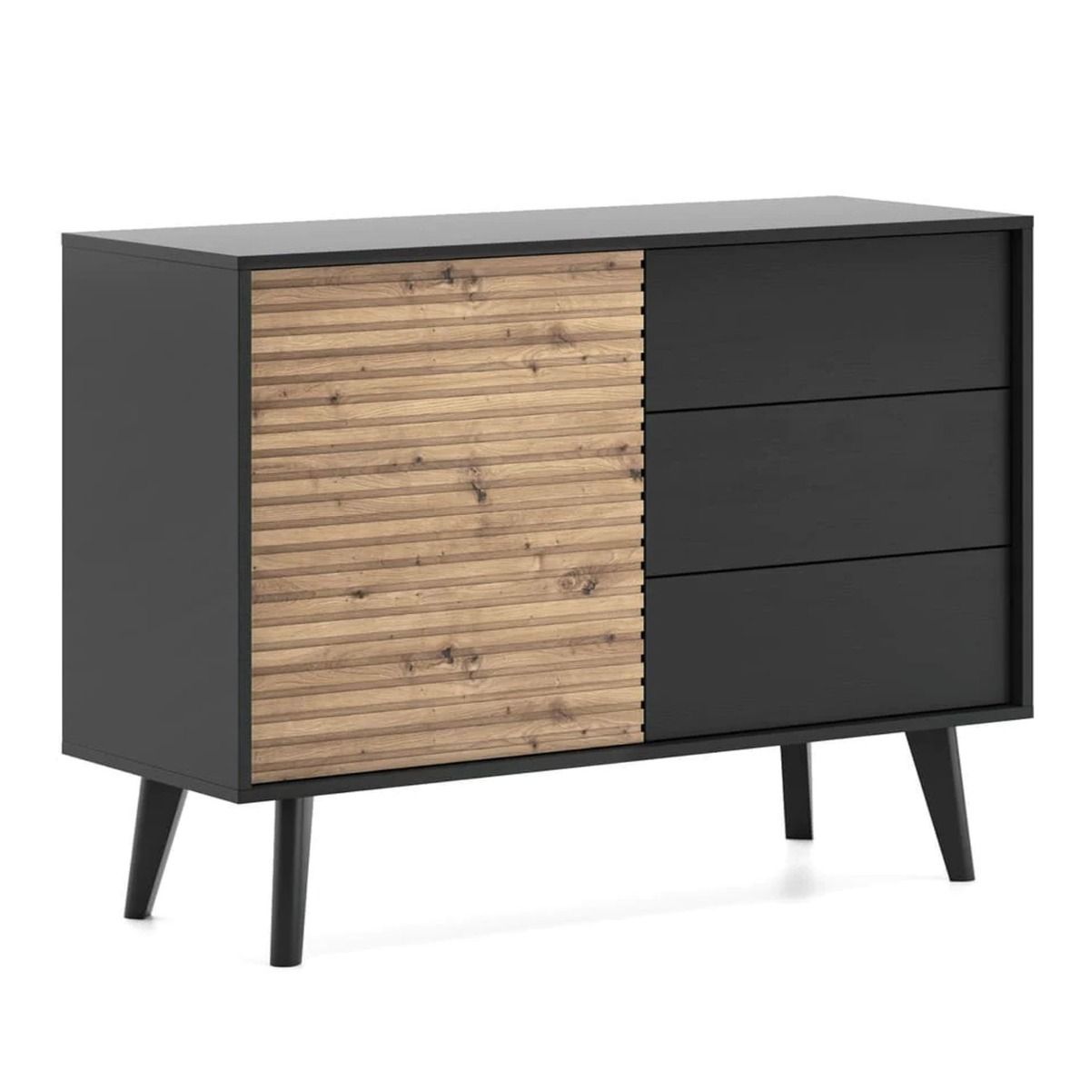 Bella Hendrix Sideboard with 3 Drawers - Oak Artisan and Black