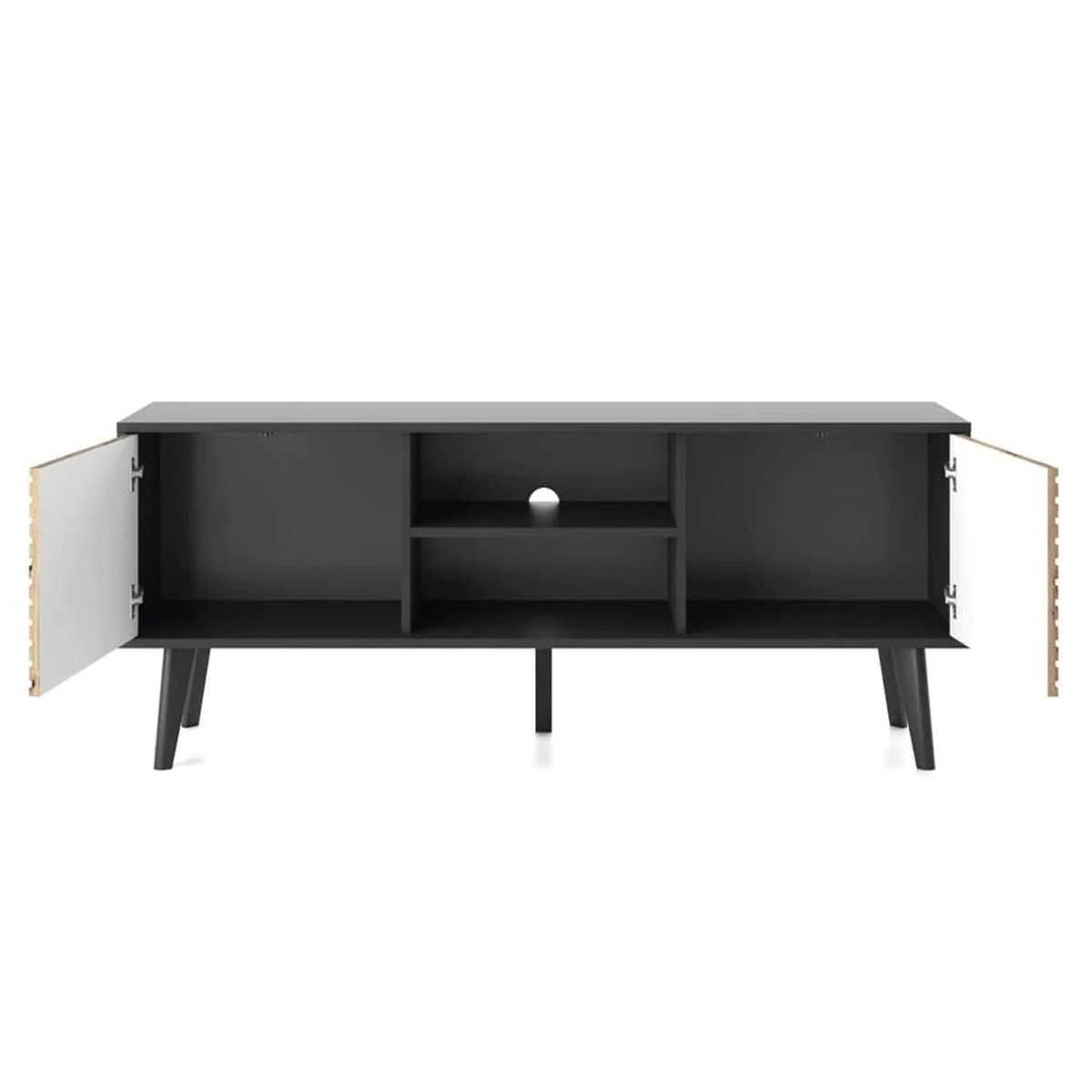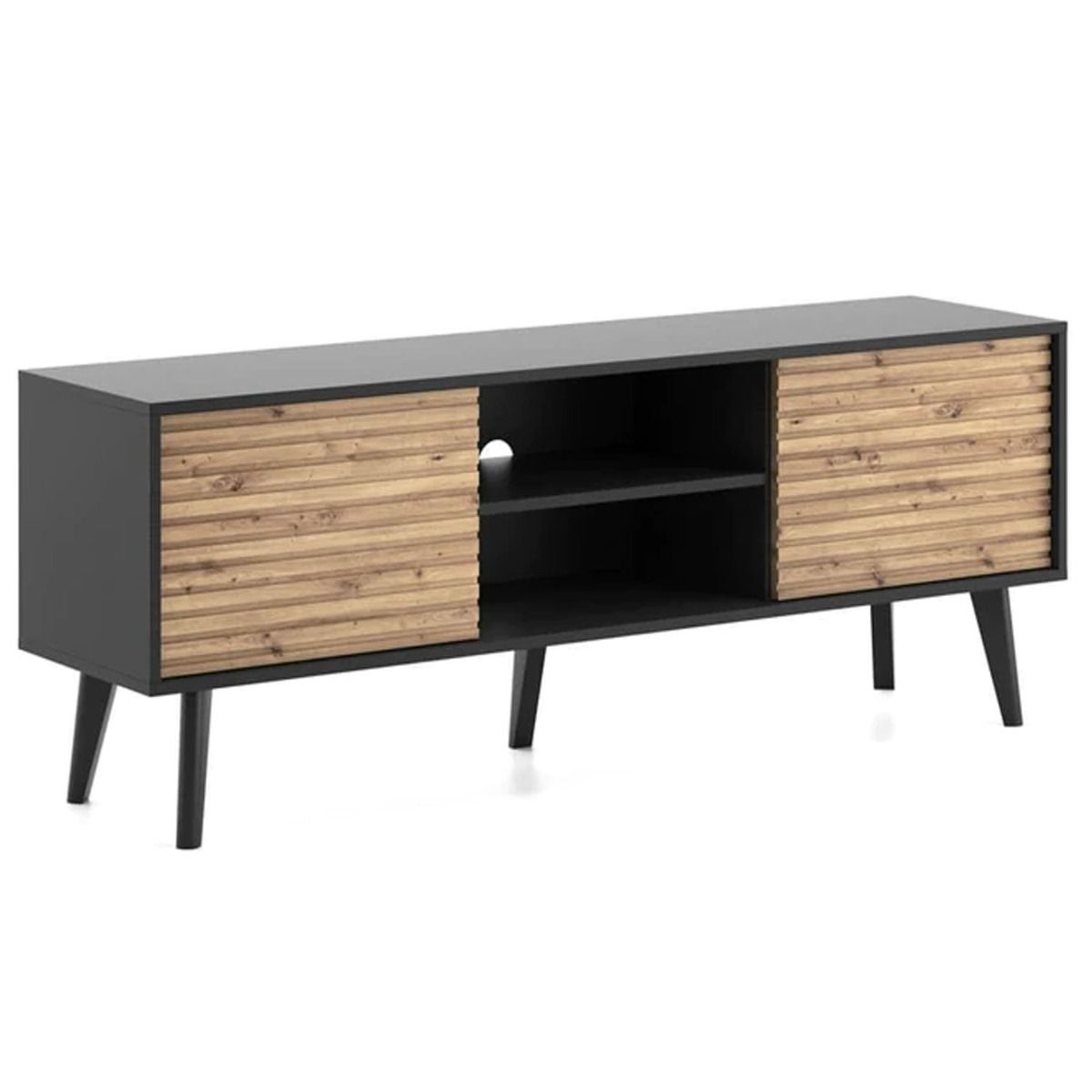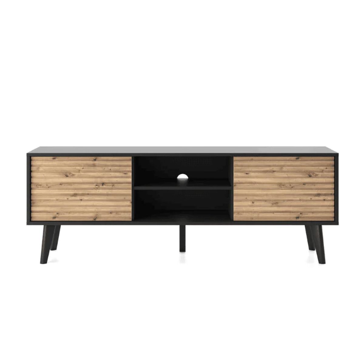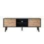 Introducing the Bella Hendrix TV Cabinet—an exquisite fusion of modern design and functionality in Oak Artisan and Black. With two hinged doors featuring a push-to-open system, this cabinet seamlessly combines style with convenience. The single shelf and cable management system offer practical storage for your entertainment essentials, ensuring a clutter-free living space. ABS edging ensures durability, while the black wooden legs add a touch of sophistication. Crafted from high-quality 16mm laminated board, this TV cabinet is more than furniture—it's a statement piece for your modern living room. Assembly required for a personalized touch.