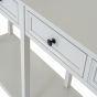 Understated sophistication meets practical organisation in the Belmont Collection 4 Drawer Console, a statement piece that blends visual texture with effortless utility. Its linear silhouette is softened by warm, multi-tonal wood grain detailing, creating an inviting focal point that can integrate seamlessly into a variety of commercial or residential interiors. The hardware exudes a subtle vintage influence, complementing the understated charm of the finish, while the generous storage of four finely aligned drawers ensures it offers both form and function in equal measure. Whether placed in a hallway, living space, or retail display, its balanced proportions offer a clean palette for styling and versatility in use. The surface, with its elongated, gently proportioned profile, allows for tasteful product merchandising in a store setting, making it as commercially strategic as it is visually appealing.