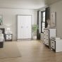 Give your bedroom a makeover with the stylish BELONA Bedroom Range. The industrial-inspired design of the BELONA is a good match for a contemporary interior, offering a pared-back, reclaimed-effect look and feel that reflects the urban aesthetic. The robust four drawer chest offers plenty of storage in a compact design. The chunky panels – including 30mm tops – are neatly framed by the contrasting casing and accessorised by black metal handles that enhance the urban aesthetic perfect for your bedroom!