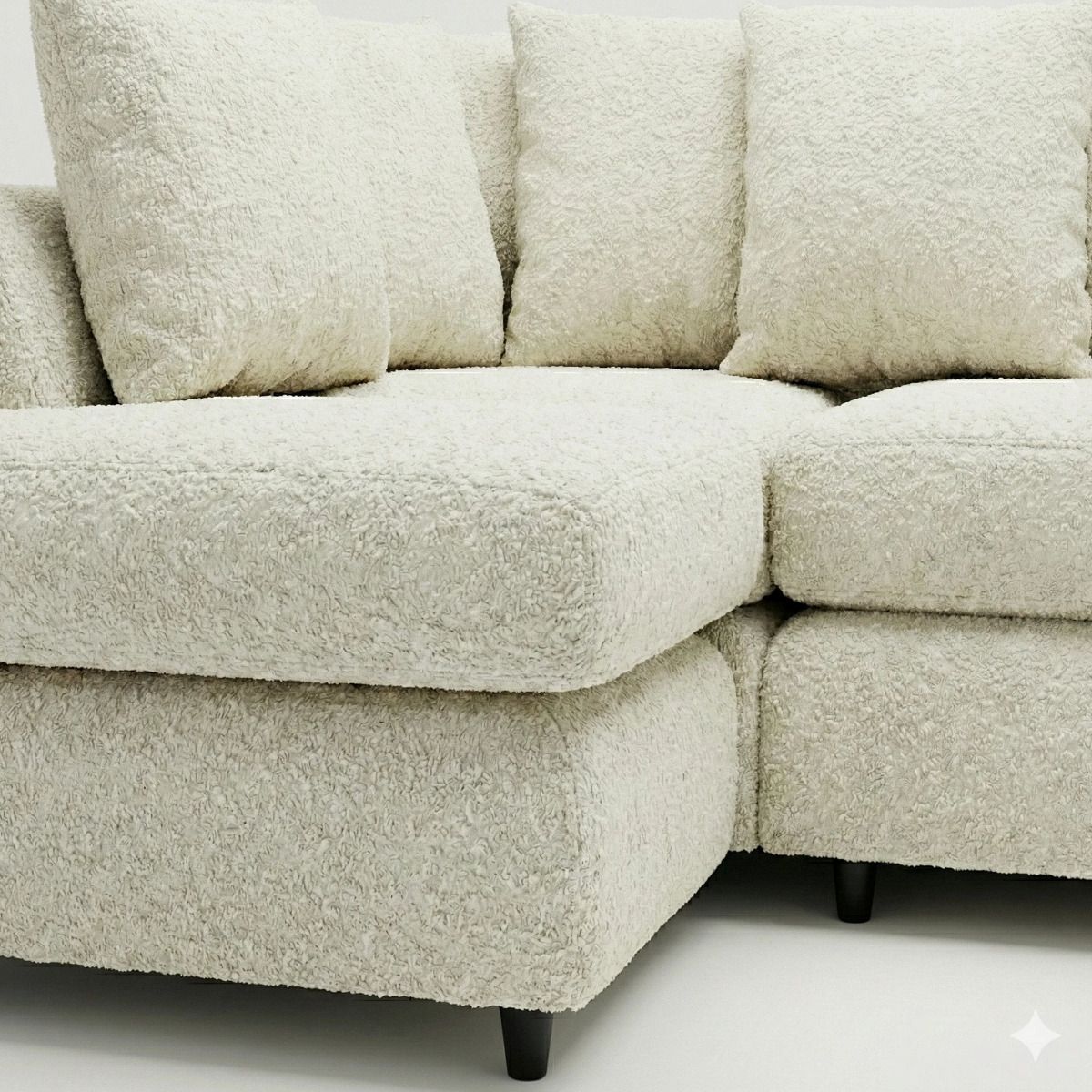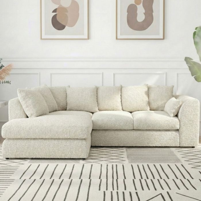 BELVANO Boucle Fabric 4 Seater L Shaped Scatterback Corner Sofa - Ivory, Left Hand Facing