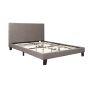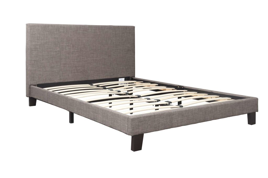 - This bed frame is upholstered in either grey fabric, steel or black crushed velvet.
