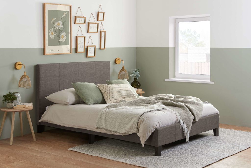 Berlin Upholstered Grey Fabric Bed Frame - Standard Double 4ft6
